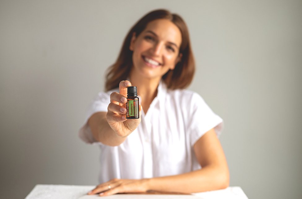 Rosemary is a perennial herb from the mint family. Its leaves are evergreen and look similar to needles. It has small flowers that come in white, pink, purple or blue. The essential oil comes from steam distilling the leaf and stem of the rosemary plant.