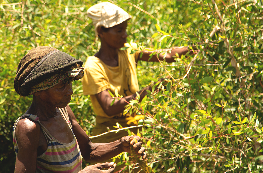 The flowers turn yellow when they are mature and ready to harvest. Although the flowers grow year-round, the principal harvest is from April to June, just after the rainy season. The harvesters (typically women) pick the flowers by hand early in the morning when the blossoms are open, releasing their sweet fragrance. The flowers need to be distilled within 24 hours of collection, otherwise, they lose their aroma and the essential oil yield from distillation is reduced. Distillation takes place for 18 to 24 hours. Because of the large volume of flowers required to produce the oil, the whole process requires a huge collective effort.