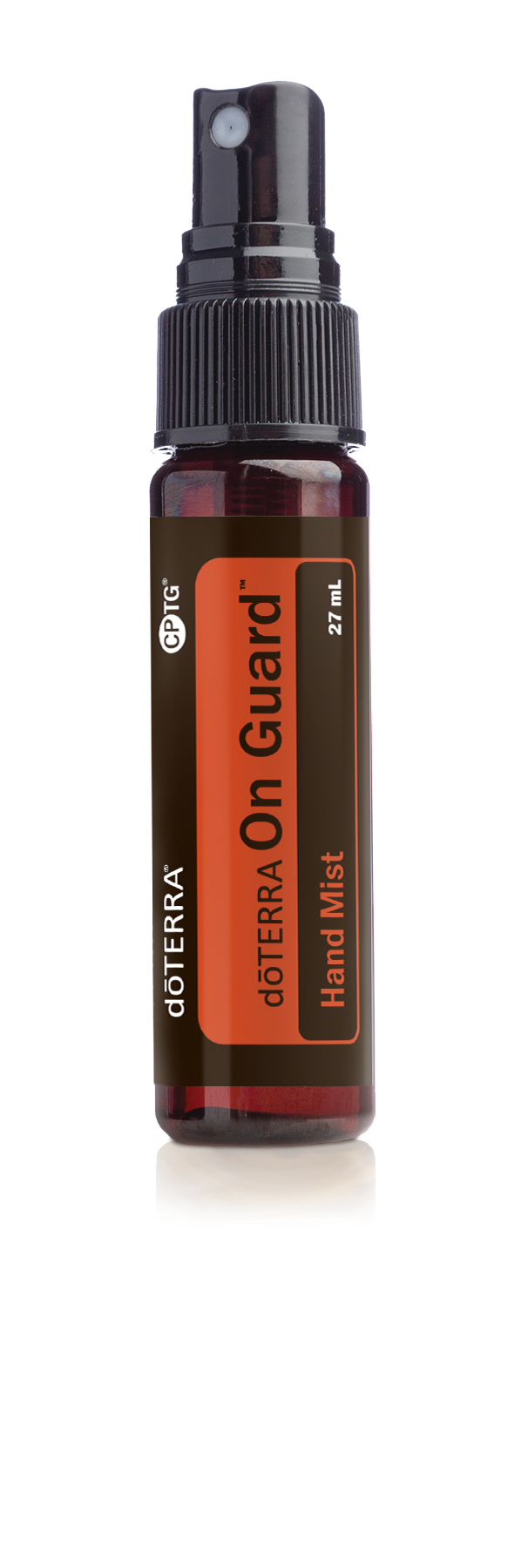 doTERRA On Guard Sanitizing Mist purifies hands by eliminating 99.9 percent of bacteria and other germs on the skin through an extremely fine, quick drying mist. Infused with a natural apple extract, the moisturizing formula will not dry out the skin and leaves hands feeling soft and smooth. doTERRA On Guard blend of Wild Orange, Clove, Cinnamon, Eucalyptus, and Rosemary, provides an uplifting citrus spice aroma and its protective benefits. The naturally derived active ingredient, ethyl alcohol, gives the mist antiseptic properties to effectively cleanse hands and prevent the spread of bacteria. Sanitizing hands with the convenient mist is perfect for traveling, school, work, and on-the-go families.