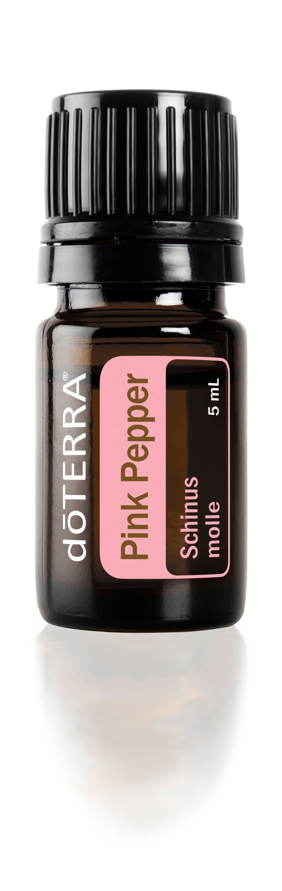 The pink peppercorn, while similar in appearance to black peppercorn apart from the colour, is closely related to cashews. Indigenous populations used all parts of the tree, including the pink peppercorn fruit. Limonene and α-Phellandrene, two of the main chemical components of Pink Pepper essential oil, promote a calming atmosphere when diffused.
